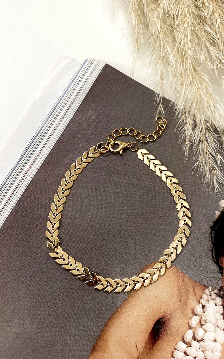 Introducing the ikrush/Amina Chevron Anklet! This gorgeous piece is perfect for dressing up any outfit. It features a delicate chain with a chevron pendant. The anklet is adjustable, so it can be worn at the perfect length for you. It's the perfect accessory for a night out or for dressing up for a casual look. Add a touch of glamour to your style with the ikrush/Amina Chevron Anklet!