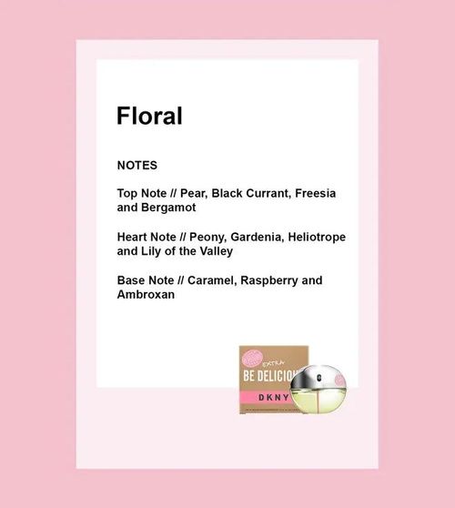 Indulge in the extra deliciousness of DKNY Be Extra Delicious by Donna Karan. The fragrance opens with a bright and juicy burst of pear, black currant, freesia, and bergamot, creating an inviting and fresh top layer. As it develops, the heart reveals a bouquet of peony, gardenia, heliotrope, and lily of the valley, adding a lush and floral dimension. The scent settles into a warm and sweet base of caramel, raspberry, and ambroxan, leaving a delectable and long-lasting impression.