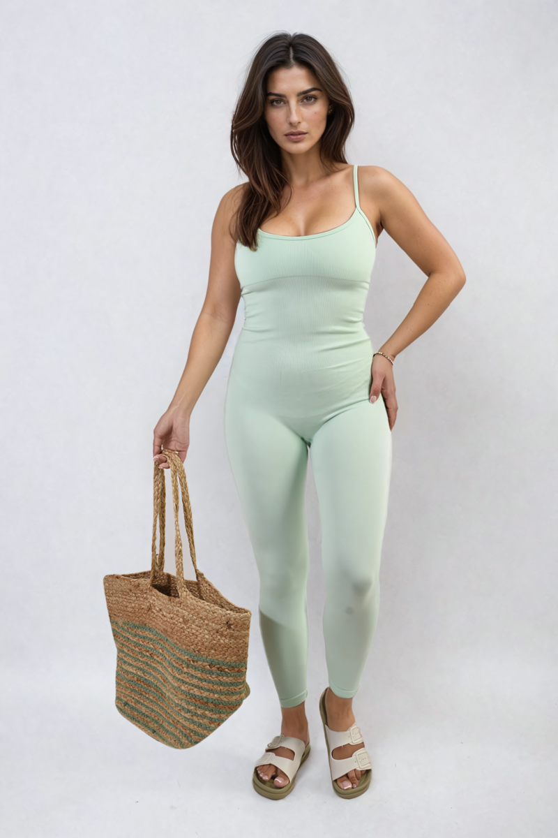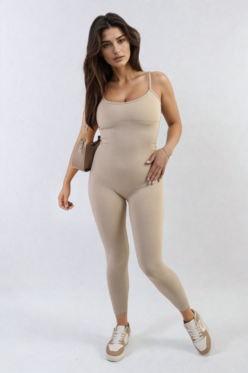 The Christina Sleeveless Bodycon Jumpsuit is a sleek and stylish outfit. It features a body-hugging fit and a sleeveless design, perfect for showing off your curves. Great for a night out or a casual day, this jumpsuit combines comfort with a chic look.